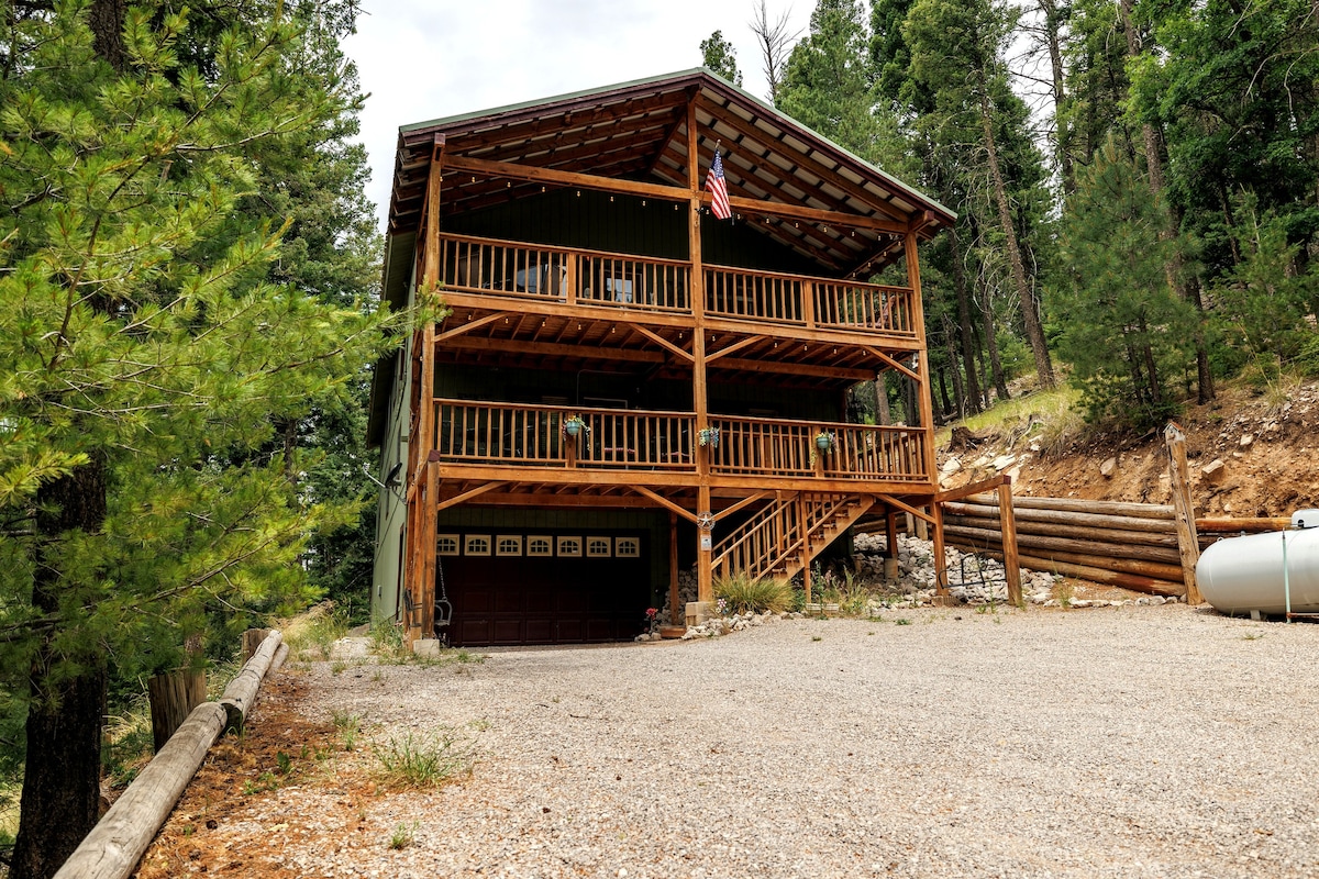 Brand new 3BR/2Bath cabin/chalet built in March 2020 Brand new furniture, beds, appliances, everything. Fully stocked; Free Wifi PETS--under 20 pounds; covered under damage deposit hold Wraparound deck has unobstructed view of Sierra Blanca mountain 15 minutes from racetrack, three casinos, Walmart 5 minutes from downtown Ruidoso, NM Isolated and quiet--access by gravel back road 4WD recommended in winter months Large Handicapped ramp entrance Owners have been in business 20 years
