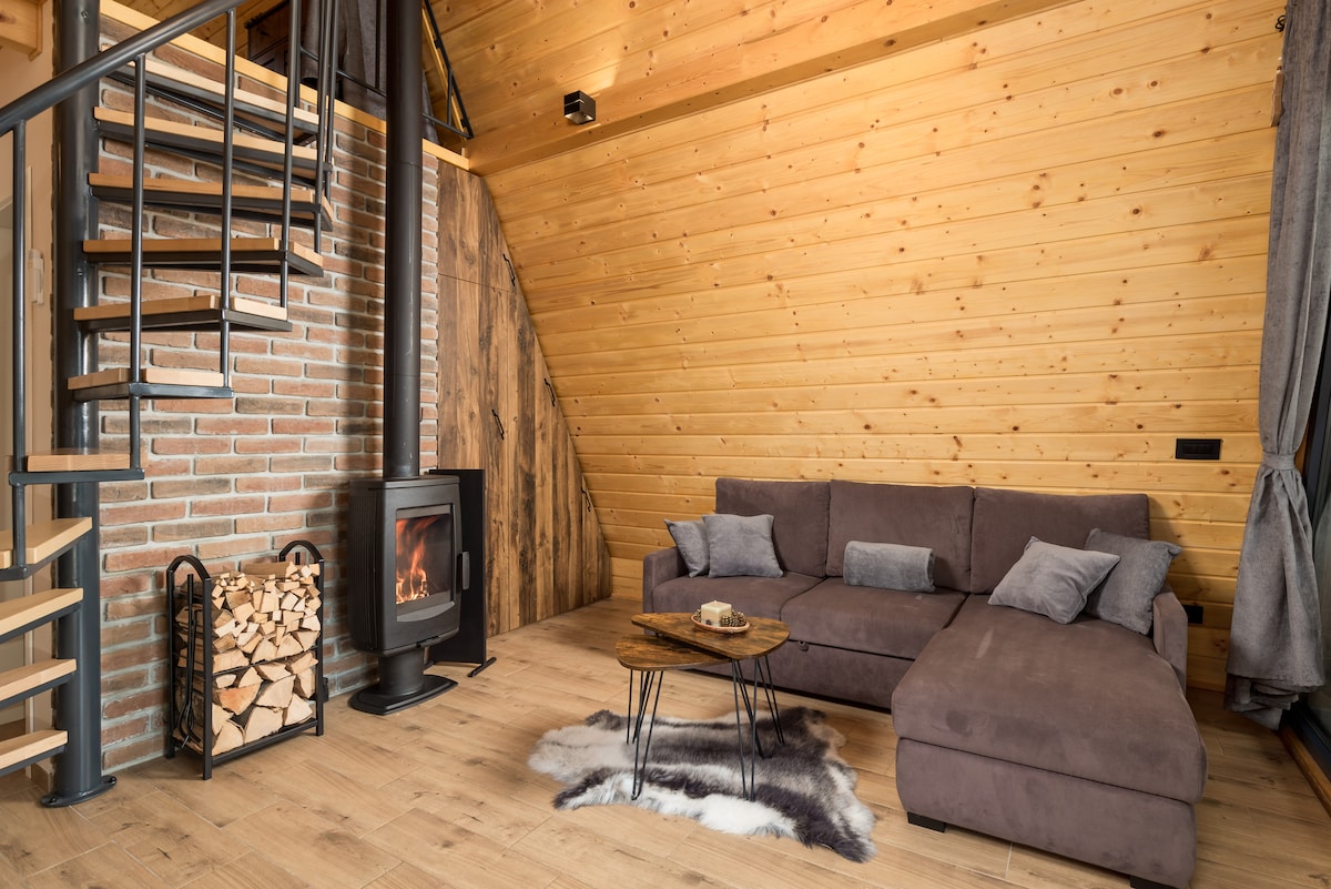 Ova drvena moderna kuća sa dva odvojena apartmana, savršen je odabir za one koji putuju u paru i zele miran smjestaj u doticaju sa prirodom. Kuća je udaljena od NP Plitvicka jezera 5 min vožnje. Kuca se sastoji od dva odvojena apartmana, svaki sa vlastitiom ulazom i odvojenom terasom. Apartman ima prizemlje i spavacu sobu na katu.
