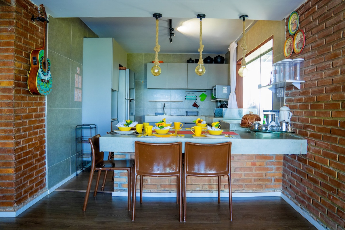 Close to Patacho Beach, our space is designed to offer everything we value in our own travels. With two full suites for up to six adults, a private balcony with barbecue, A/C in every room, a fully equipped kitchen, and a washer-dryer! We guarantee a unique stay! In addition, you’ll have access to a full resort-style condominium with a gym, pool, jacuzzi, playground, and 24-hour reception. The location is excellent, close to restaurants and the natural beauty of Milagres and Japaratinga!