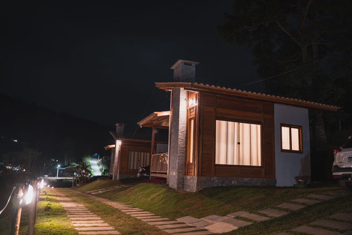 Wooden chalet with 2 bedrooms, bathroom, full kitchen, balcony and outdoor area, available for up to 2 couples, with a delicious homemade breakfast included in the reservation. In addition, our location is privileged, we are 3 km from downtown Venda Nova do Imigrante-ES and 13 km from Pedra Azul-ES. Come and live this experience and relax with the whole family in this quiet place, in contact with nature. We look forward to welcoming you and your family.