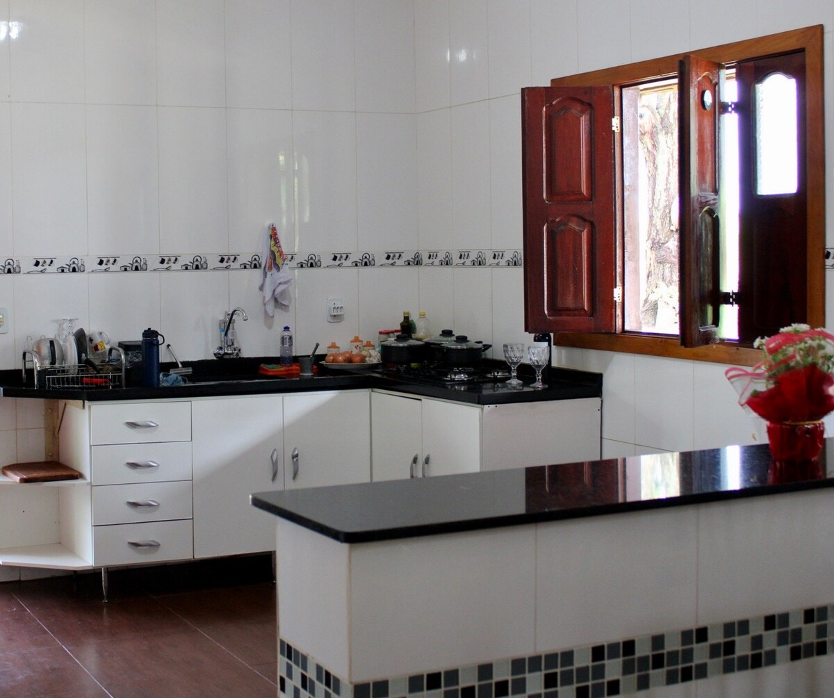 Whether you're planning a romantic getaway or a peaceful family retreat, Recanto Quincas is the perfect place. Here, comfort, privacy, and a connection with nature come together to create a warm and memorable stay. Spacious, charming, and safe — a true home-away-from-home where you can disconnect and enjoy quality time with your loved ones. Paved road: 5 min from Olhos D’Agua 10 min from Alexânia 15 min from Outlet Premium 30 min from Salto do Corumbá 30 min from Corumbá do Goiás