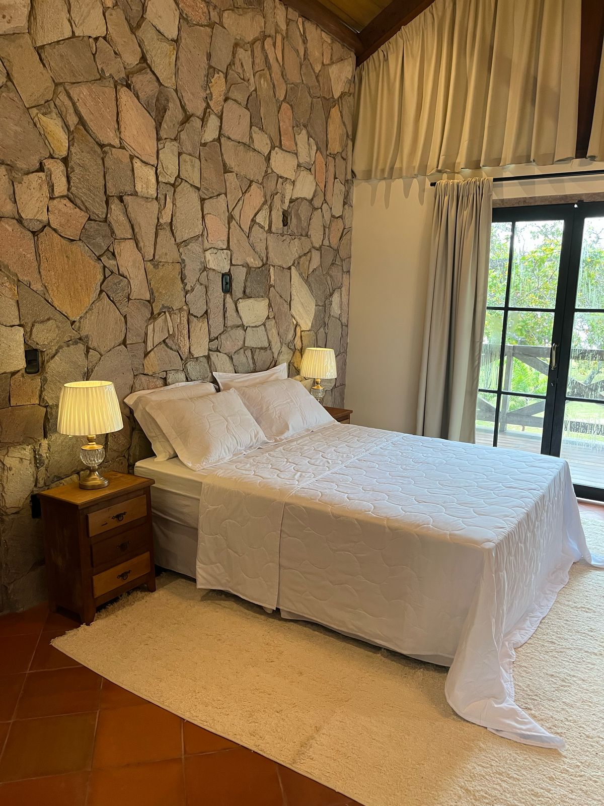 💰 Pay in up to 6 interest-free instalments 💳 In the cosy cold of the Serra da Ibiapaba. We are located in the highest mountain range, a beautiful and safe region with breathtaking views. 3 en-suite bathrooms, one of which is convertible 1 queen-size airbed The master suite has a panoramic view and heated hot tub. Room with tv. Cozy leather sofa with a charming stone fireplace. Wifi Electric Showers Full Kitchen Cascade table with 6 comfortable armchairs