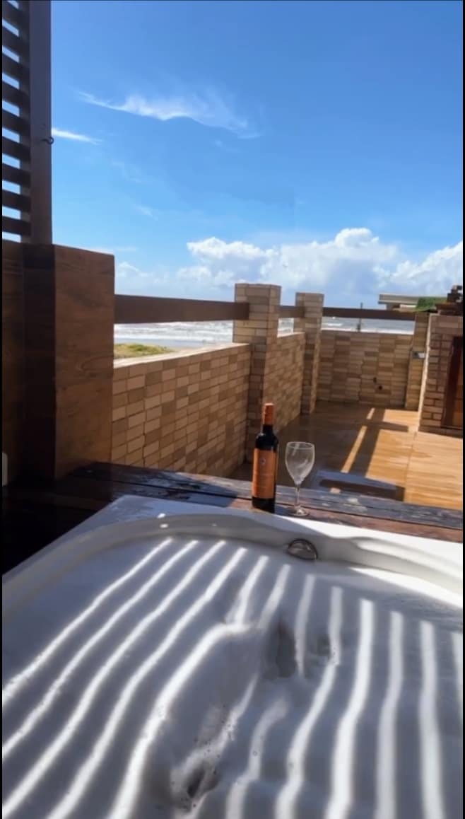 Fully furnished seaside apartment, with Jacuzzi (currently the Jacuzzi only functions as a bathtub) on the balcony, various household appliances, washing machine, refrigerator, Nespresso coffee machine, dishes, cutlery, blender, sandwich maker, clothes dryer, microwave, vacuum cleaner, Wi-Fi, split air-conditioning in the 2 bedrooms, and now with a space for a home office, etc.