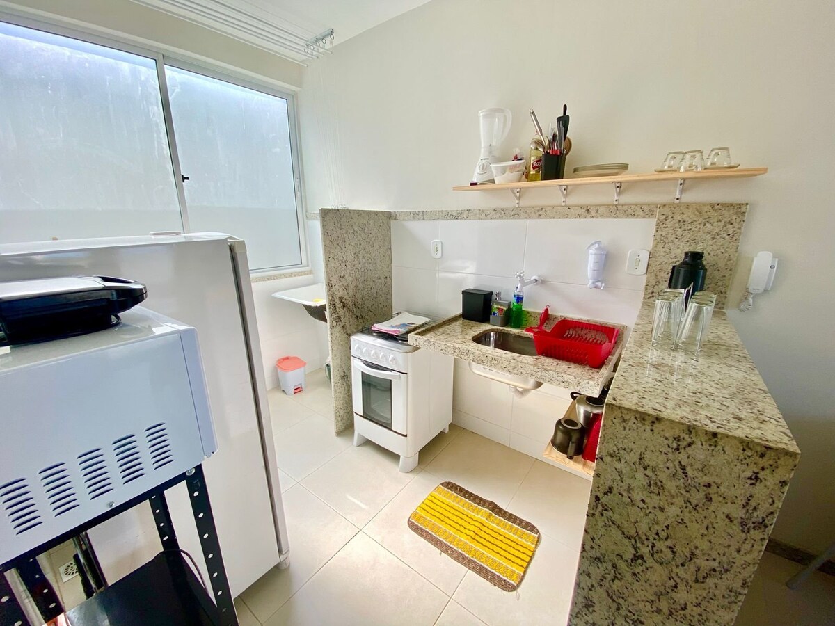 Private apartment with: air conditioning Wi-Fi + Smart TV equipped kitchen Ideal for up to 5 people, bed linens and bath towels are provided The Village has 9 other apartments, all individual and private, in addition to parking with 1 rotating parking space Shared common areas: laundry, swimming pool and barbecue area Privileged location, we are close to busy restaurants such as Carii, Rei da Sopa and Laguna/Caranguejo (only 190m away), as well as bars and markets