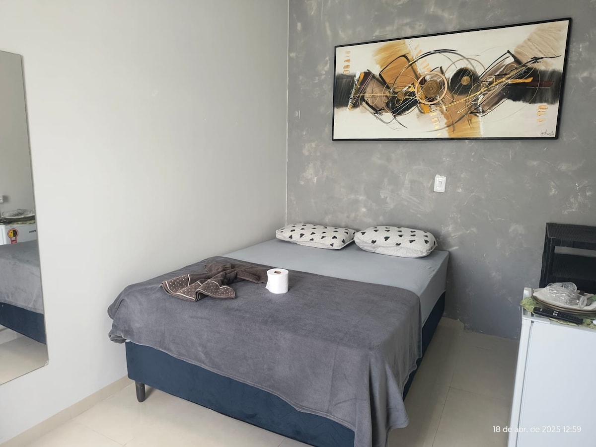 Studio with great location, in the city center. Stay 200 meters away from the largest network of hospitals and clinics in Palmas, and within walking distance to large supermarkets, Havan, Cesamar Park, SmartFit gym and several other city attractions. Market options within the block and quick access to Avenida do Antigo Aeroporto, with varied food and leisure options. Quiet and cozy place, where you will have a pleasant stay.