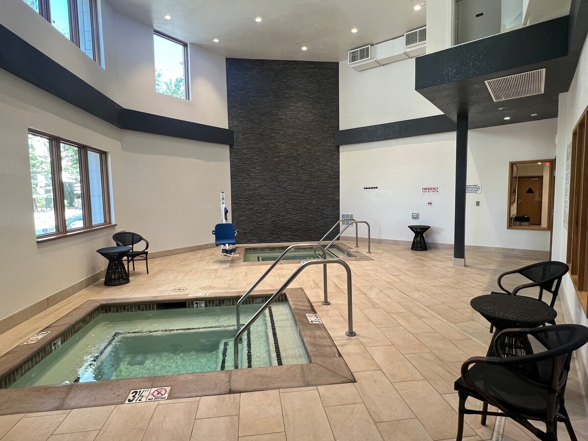 Read entirely before booking. Luxury Marriott studio with queen bed and padded chair. Extra people are allowed to provide their own sleeping space on the floor. Marriott will not supply additional bedding. Full kitchen. Dining table for 2. Hot tubs, heated pool, sauna, workout, relax by the fire. World class Marriott accommodations. You are required to pay a $135 cleaning and $45/nt valet parking fees (if used) at check out. Read parking details. Your booking means that you agree to this.