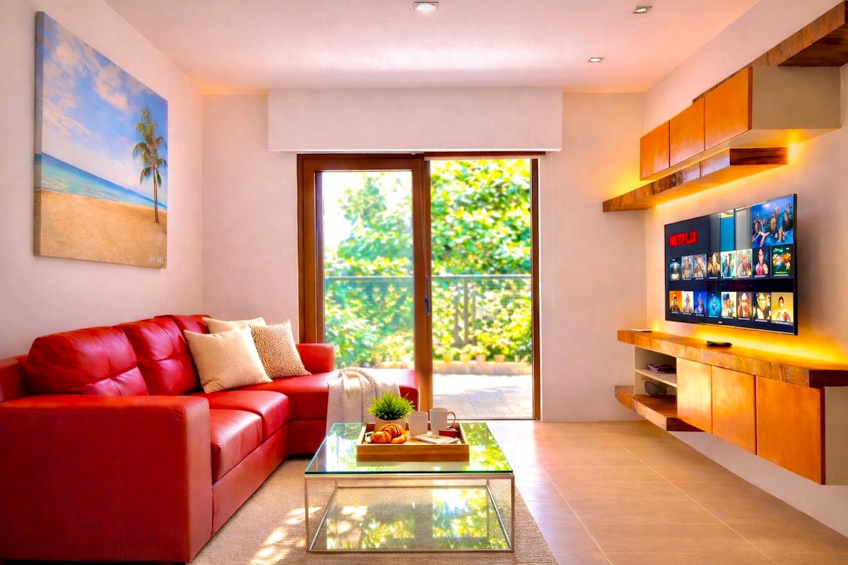Welcome to our modern, DOT accredited apartment with beautiful mountain and ocean views. Relax by our two pools and private beach. We provide essentials like towels, shampoo, body wash, kitchen supplies, and toilet paper, plus complimentary drinking water—no heavy bottles needed! Enjoy a 42" 4K SMART TV in the living room and a 32" HD TV in the bedroom, along with 50 Mbps fiber internet. The fully equipped kitchen and air conditioning in both rooms enhance your stay. Enjoy your stay!
