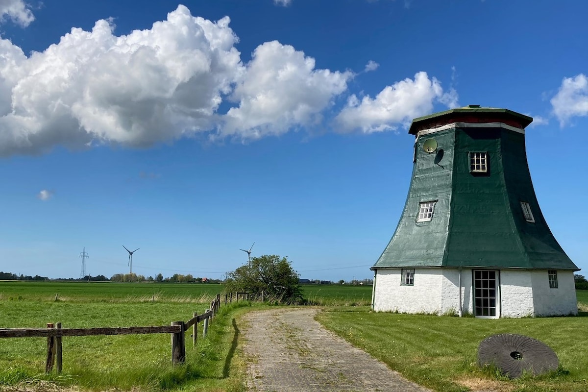 In our windmill "Kallis Mölln", which is converted into a holiday home, you will find a unique holiday home for two people. Located directly on the Harle River, you have found an exceptionally beautiful place all to yourself. And with your vacation, you help us to restore and preserve our windmill. Highlights of "Kallis Mölln" are not only the charm of living in a windmill itself, but also the very exposed location in nature.