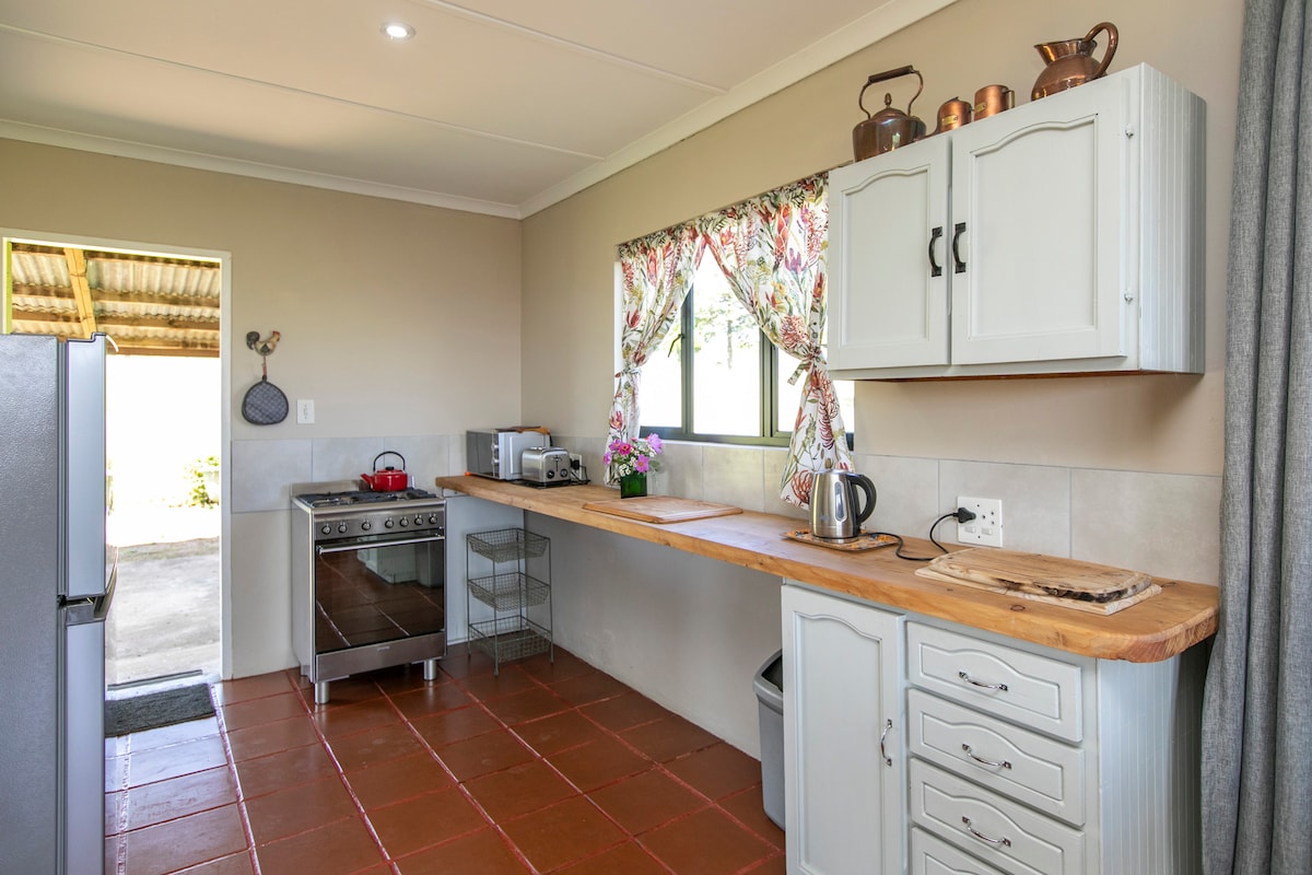 Ideal for a couple or family of 4 weekend getaway or stopover en route to Sani Pass/Himeville. This unit is nestled in a picturesque setting with a tranquil & soul-rejuvenating atmosphere on a secluded farm at the foothills of the Drakensberg (approximately 37km from Nottingham Road). Enjoy walks, bike rides, bird-watching or simply read a book by the fire. Note. There is a queen bed in the bedroom and a day-bed in the lounge/kitchen area which sleeps 2 (king size or 2 single beds)