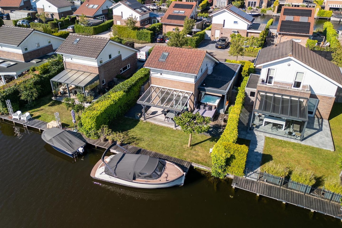 Exceptionally charming and luxurious houseboat including unlimited use of associated sloop, jacuzzi. The houseboat has a capacity of up to 11 people, has a total area of approximately 240 m2 and has 4 bedrooms, two toilets, two bathrooms, a well-equipped kitchen with all imaginable appliances, washing machine and dryer, and in the garden a spacious heated and covered Jacuzzi. The spacious living room has a seating area around the fireplace, television.
