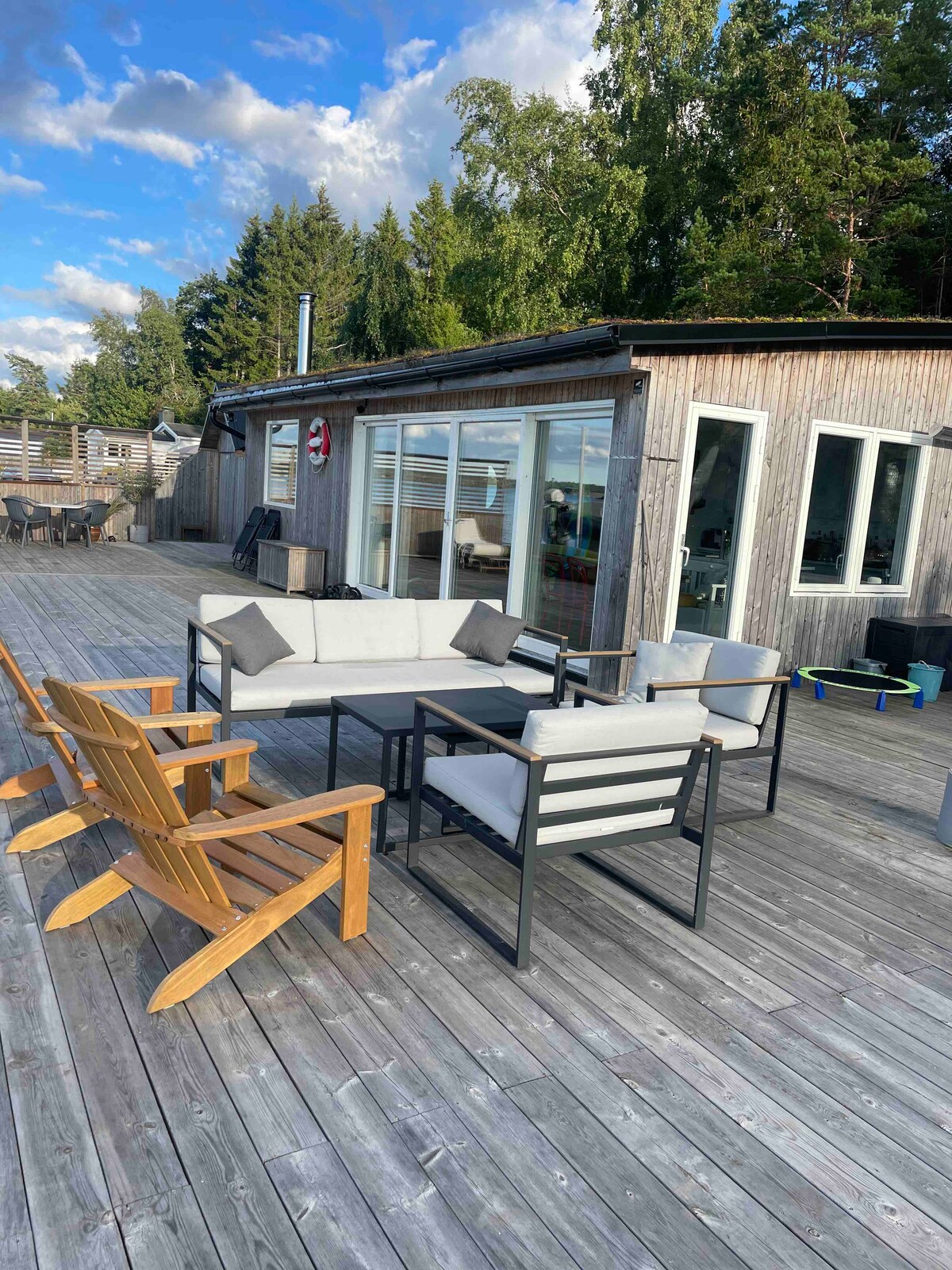 House by the sea on a jetty👍Enjoy the hot tub and wood-burning sauna. Fantastic outdoor environment. Modern and fully equipped house, tastefully decorated. Perfect experience for those who want to have a relaxing and beautiful time on the water🌞 If you want to be active: canoe, hike in the nearby national park, go for a run or go boating. All this just 30 minutes from Stockholm! Imagine spending a few days or weeks in this environment 😀 - All space is privately available to you as guests.