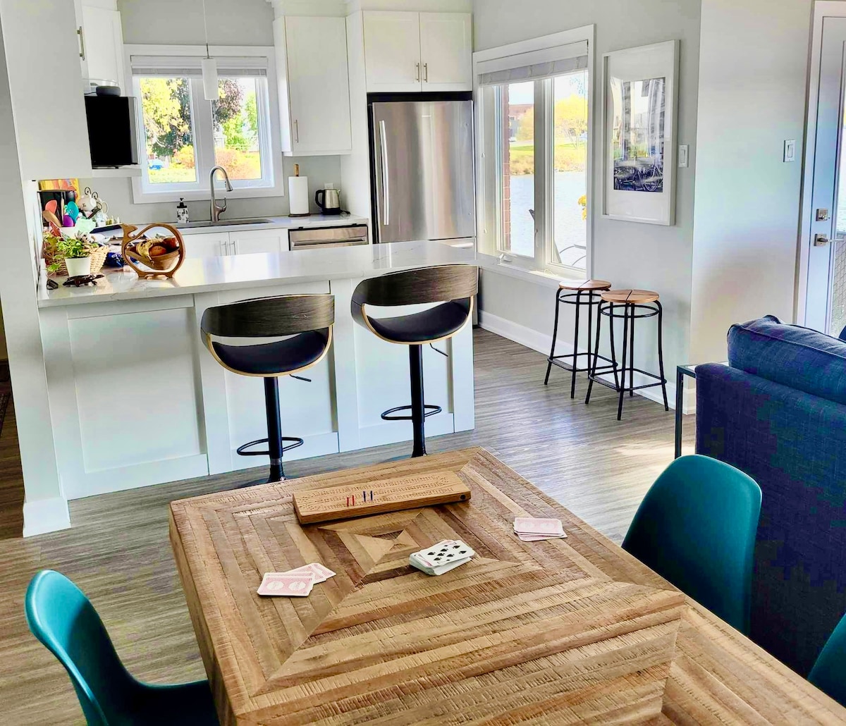 ✨ Escape to our serene waterfront retreat, where luxury meets comfort. Stay at our bright, modern 2-bedroom, 1-bath apartment on the waterfront! With full accessibility and main-level convenience, it’s ideal for both work and play. Steps from the Waterfront Recreation Trail, you’ll enjoy nature, relaxation, and vibrant local experiences.
