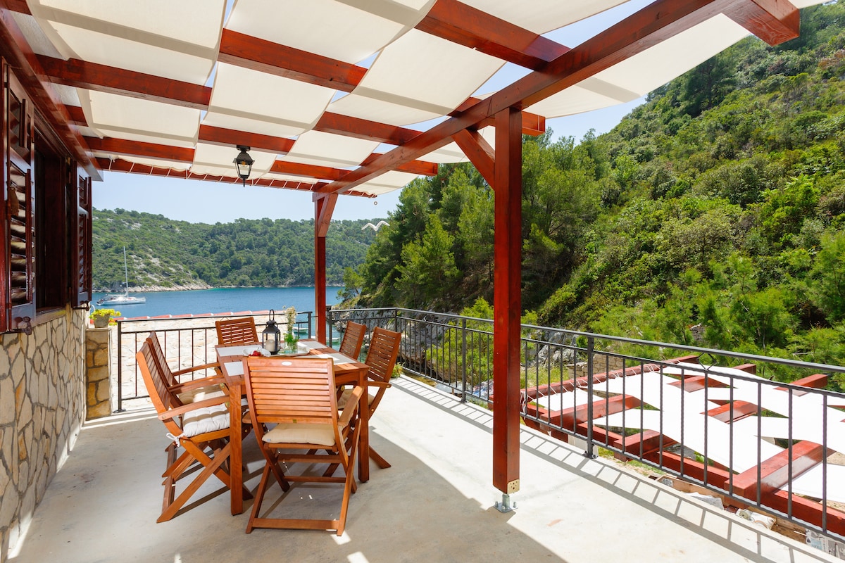 Welcome to our cozy one bedroom penthouse flat on the island of Brač boasting 65 sqm space and a balcony. Our family house is a traditional Dalmatian stone house built only 6 m from the sea on the property of 1500 sqm hidden in the shadow of 50 year old Mediterranean trees. Those who want to spend their vacation in the quiet place next to the sea should come to us – to our little village of Bobovišća na Moru on the southwest side of the island.