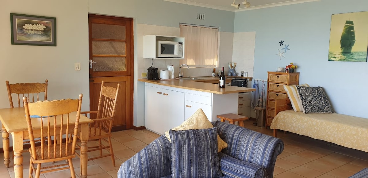 From the comfort of your couch you can overlook False Bay & Gordon's Bay. From the Balcony, Gordons bay Village, Somerset West and Helderberg Mountain in all their splendor are spread out in front of you. From the garden leads a footpath down to the road leading to Bikini beach (4min) or Sunset Beach (3min). You will enjoy the most stunning sunsets from the balcony.