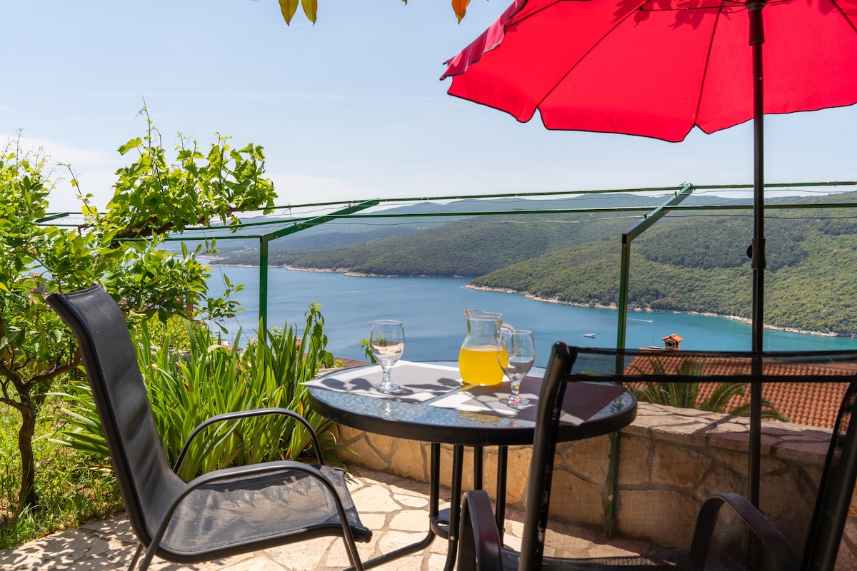 Time to dream above the sea. An apartment on the top floor of a family house, with spectacular view, and I do mean spectacular views of the sea, the bay and also of the Old City Labin. It is located in an area close to the sea. Walking distance to the nearest and biggest beach in Rabac is 250 meters. The décor of the apartment is clean and fresh and modern (check out the photos). Best for 2 people - couples, best friends, solo adventurers, business travelers.