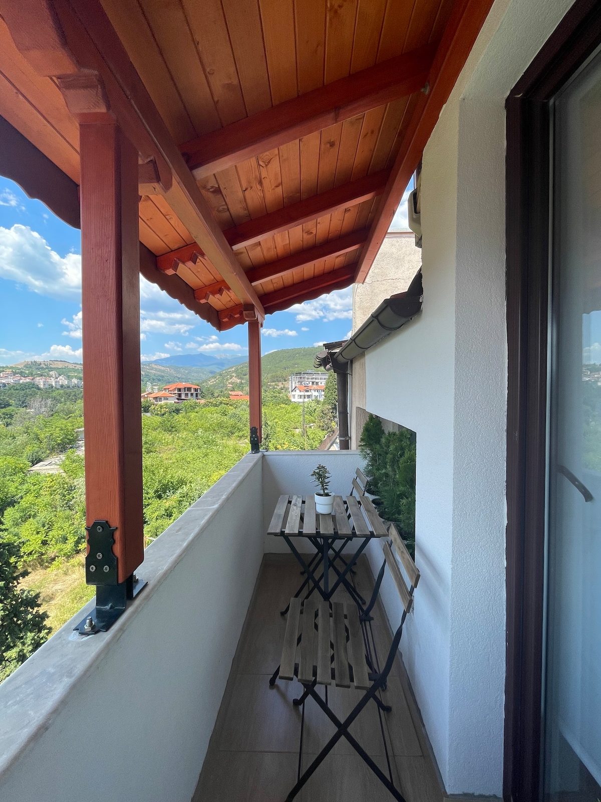 Добре дошли в нашето уютно и модерно семейно убежище в сърцето на Сандански. Само на крачка от красивия градски парк, апартаментът предлага всичко необходимо за пълноценна почивка – тишина, комфорт, панорамна гледка към планината и идеално местоположение. Тук създаваме спомени и ще се радваме да създадете и вие свои.