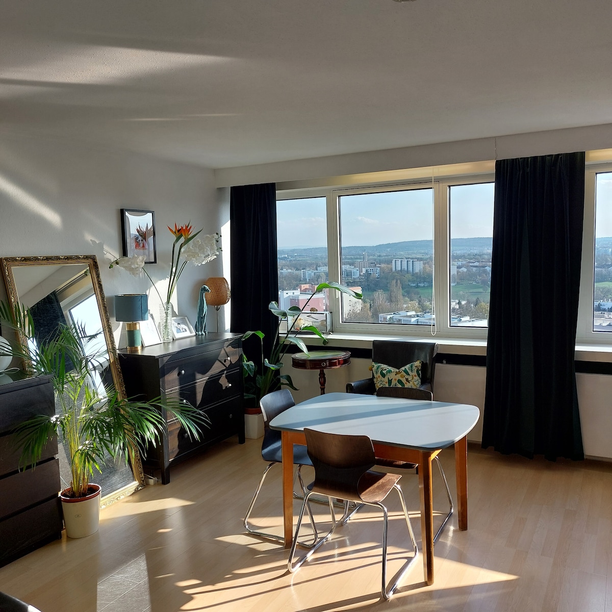 Absolutely centrally located, between the airport and the city center in the S.I. Centrum! Musicals, discos, restaurants, pubs, cafes, bars, as well as a casino are located DIRECTLY in the S.I. Centrum. But don't worry: on the 14th floor, you are absolutely undisturbed! The apartment is magical and elegant. There is a double bed. An extra 3rd mattress would be available. One half of the closet contains my clothes, the other half is at your disposal. It is mentioned because this was recently criticized.