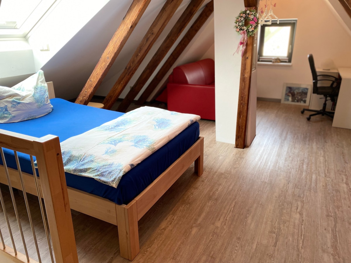 The apartment is on the outskirts of Gemmingen-Stebbach. It is equipped with everything you need and more. The apartment is ideal for 2 people. If necessary, sleeping places could be extended on the sofa bed or crib. In the garden there is a playground with sandbox, slide, pirate deck, trampoline and climbing wall for free use. Families are very welcome! Hot tub use is possible for an additional energy charge of €10 per day and must be announced in advance to heat it up. 11 kW wallbox