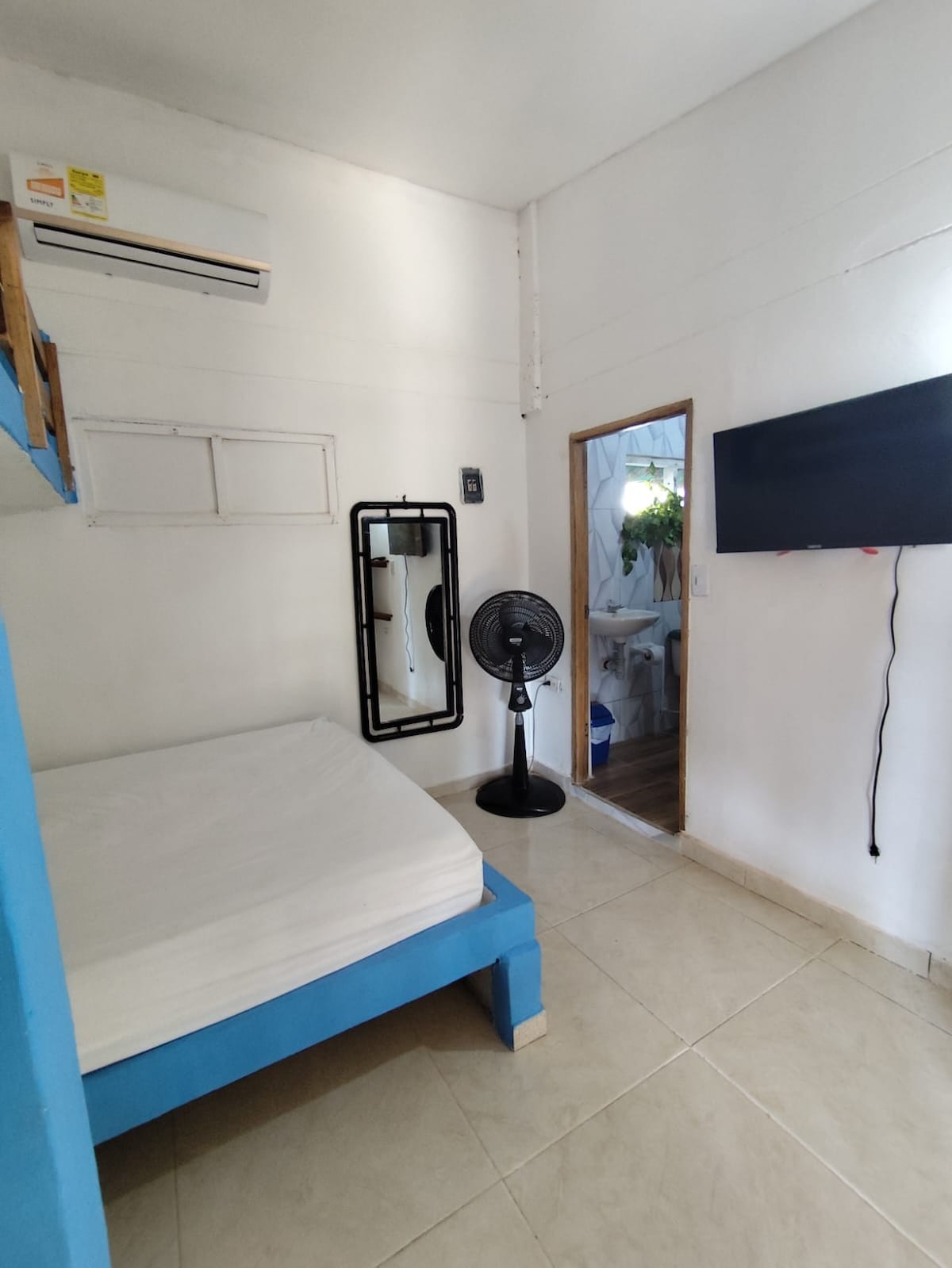 Room of 7.5m2, equipped with a double bed of 1.4m wide, 4 pillows, with their respective linen and a bath towel per guest, air conditioning and fan, 24h water (not drinking), wifi, access to all social areas of the hostel, kitchen and social fridge. Breakfast and room cleaning included. It also has an internal private bathroom, in which you will find toilet paper and a liquid soap with a delicious aroma.