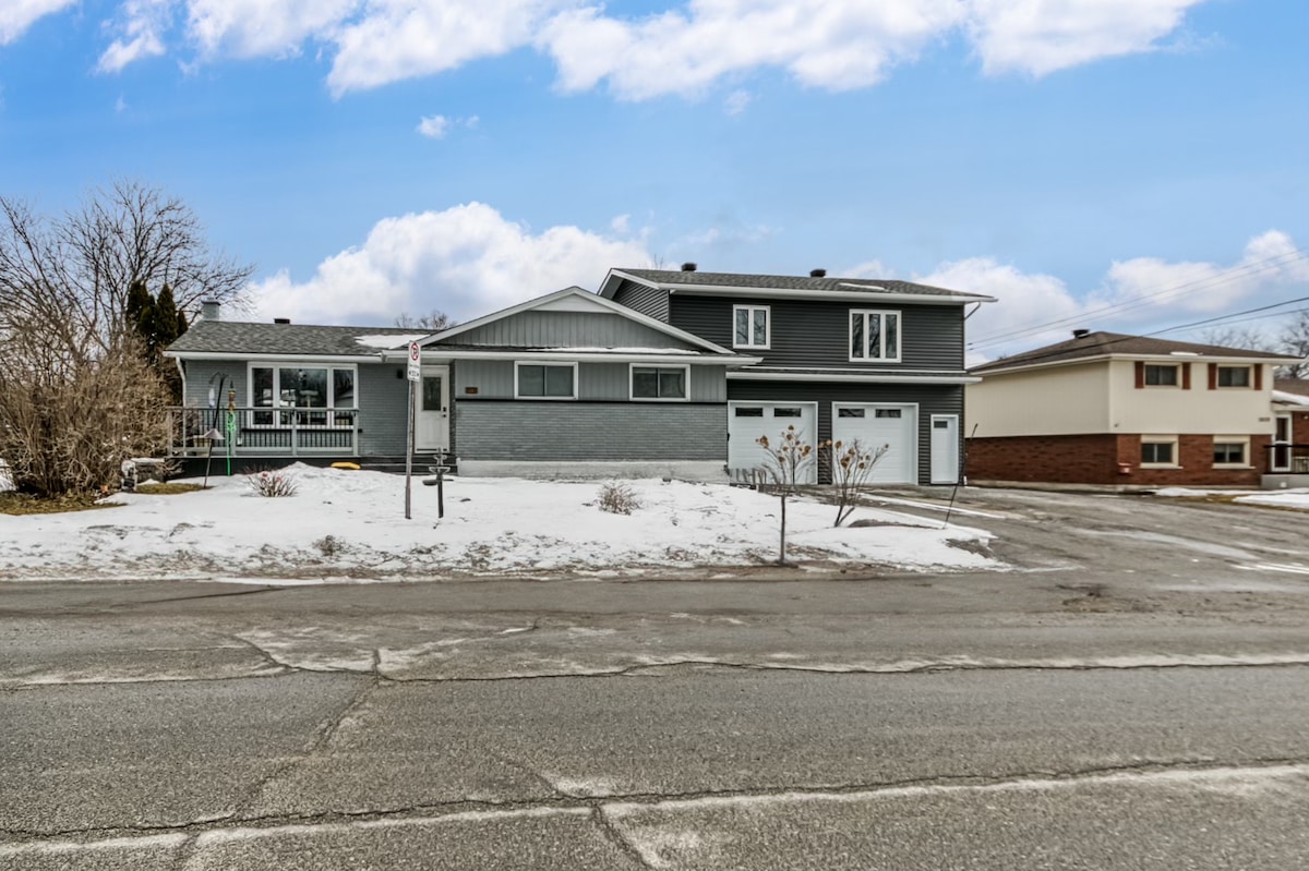 Modern, clean and comfortable self contained renovated three bedroom apt with lake view. Five minutes walk to Ramsey lake swimming/ kayaking beach or Kayak in Minnow lake across the road. Full kitchen and bathroom with washer and dryer. Ample parking for four cars Big screen TV in living room, smaller flat screens in each bedroom with Netflix, high speed WiFi, Private entrance with keyless entry Convenience store, pharmacy, Ice skating rink, bar, food truck in summer all five minutes walk away