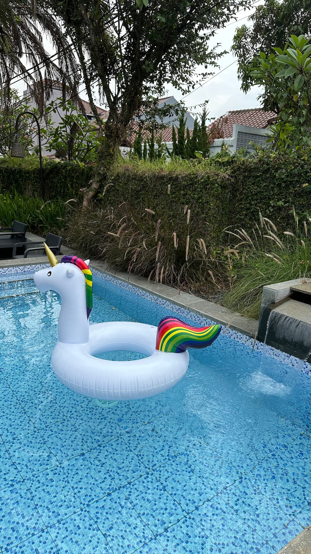 Have fun with the whole family at our stylish place. It’s a heated natural water from the hill (not a hot spring). Open from the living room, your children will love playing in this hot tub 💙 1. TIDAK available untuk pasangan yang BELUM menikah. 2. Setelah jam 10 malam kurangi volume suara dikarenakan area pemukiman. 3. Jam operasional Air Panas di kolam dari jam 6 pagi - 10 malam. 4. NO ALCOHOL, DRUGS, PORN & PARTY. 5. Security patroli 24 jam.