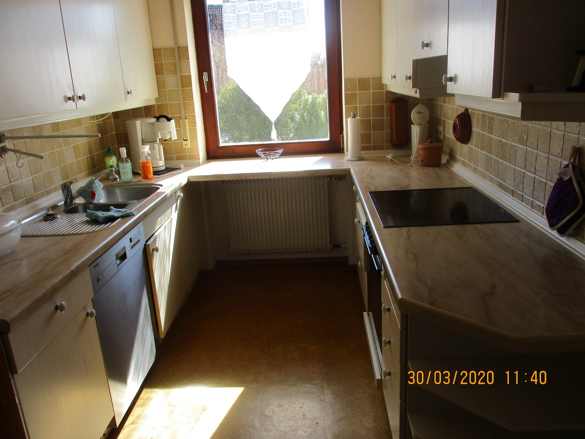 You will live in the countryside in a very quiet and cozy 60 m² apartment in the annex. Ideal for switching off. The adjacent Haßberg with its many paths invites you to hike or cycle. Linens and towels are included. Fast Wi-Fi with up to 100 Mbit/s is also available free of charge. The access data is available in the apartment. We would appreciate it if you could let us know the approximate arrival time in advance.