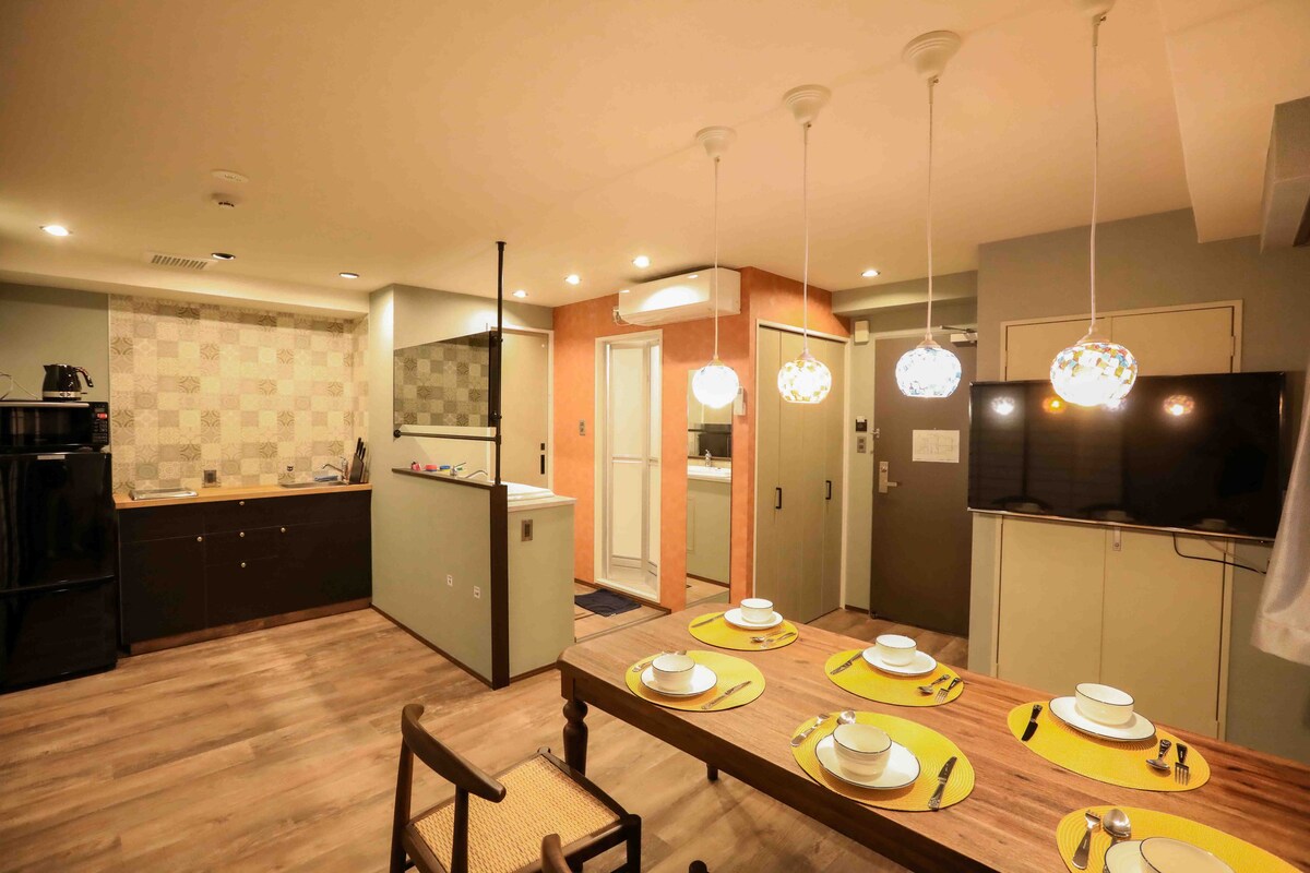 It's convenient for the whole family to go anywhere at this centrally-located place. The room is furnished with two queen-size beds, making it ideal for families or groups of friends staying together. The bed spacing is comfortable, and the layout provides private space.Sleeps up to 5 people. The open-plan kitchen is equipped with an induction hob, pots, pans and dishes, so you can easily prepare home-style meals or simple Japanese dishes. The bar connects the living and dining areas, making it the perfect spot for everything from a morning coffee to an evening meal. The washbasin area and the bathroom are designed separately, so even if several people are staying together, they can each maintain their own pace. Providing Bluetooth stereo, listening to music and taking a hot bath at night in Japan is the most relaxing moment of the trip. A projector is available in the room, which can be easily connected to popular digital streaming platforms. Fully equipped with a washing machine, air purifier, iron and a spacious wardrobe, we've got everything you need. The space is just right – perfect for working quietly at the bar on your own, or for staying with friends or family for a few days. Get along well and feel comfortable with one another.