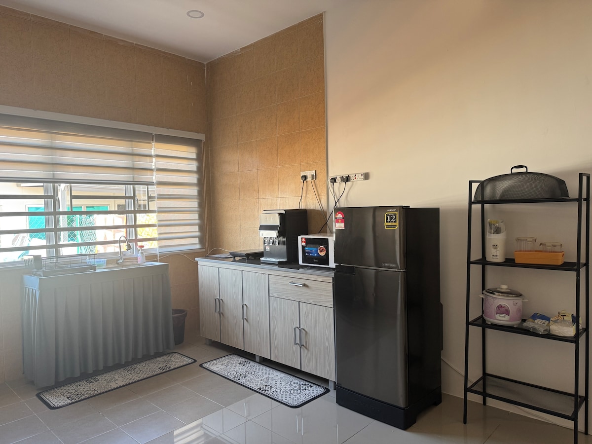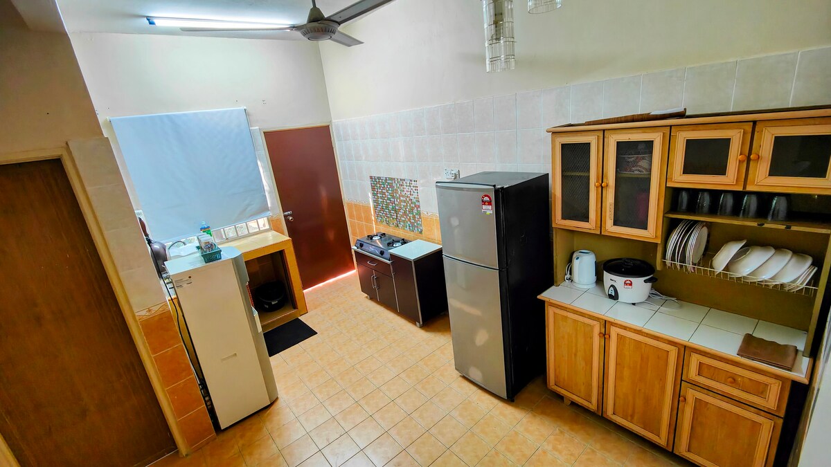 Only for muslim Memuatkan :6-8 orang 🏠3 bilik, 2 bilik air berserta water heater 🛀 - Bilik 1 - 1 Katil King (aircond ❄️) - Bilik 2 - 1 Katil Queen(aircond ❄️) - Bilik 3 - 1 katil Queen(aircond ❄️) 📺2x TV + Netflix +Wifi (1x ruang tamu & 1x master bedroom) 🧊Peti Sejuk 🥘Dapur Gas , Microwave, Toaster 💧Cuckoo Water Dispenser 🚙🚗Parking berbumbung (2 buah kereta) 🧖♂️Tuala mandi 🛋️Ruang tamu, meja makan 🧼Mesin Basuh 👔Iron + Iron board 🕋 Sejadah disediakan * sabun mandi 📶Free Wifi