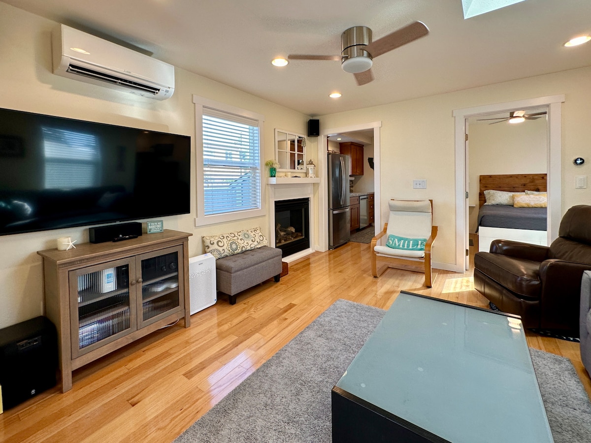 Detached home w/ patio, private entrance & gated off-street parking. Your own beach home! Walk to Beach, Restaurants & Breweries, great Coffee, Grocery/Health food store, Boutique Shopping, Farmer's Market, Nightlife! You'll love the modern, clean yet breezy beach vibes of this quintessential owner designed Coastal Craftsman! Gas BBQ, Laundry, Bikes, Beach Gear, Pack&play,high chair. Three short blocks to the beach and Newport Ave. 750 sq ft Rear house property with two houses.