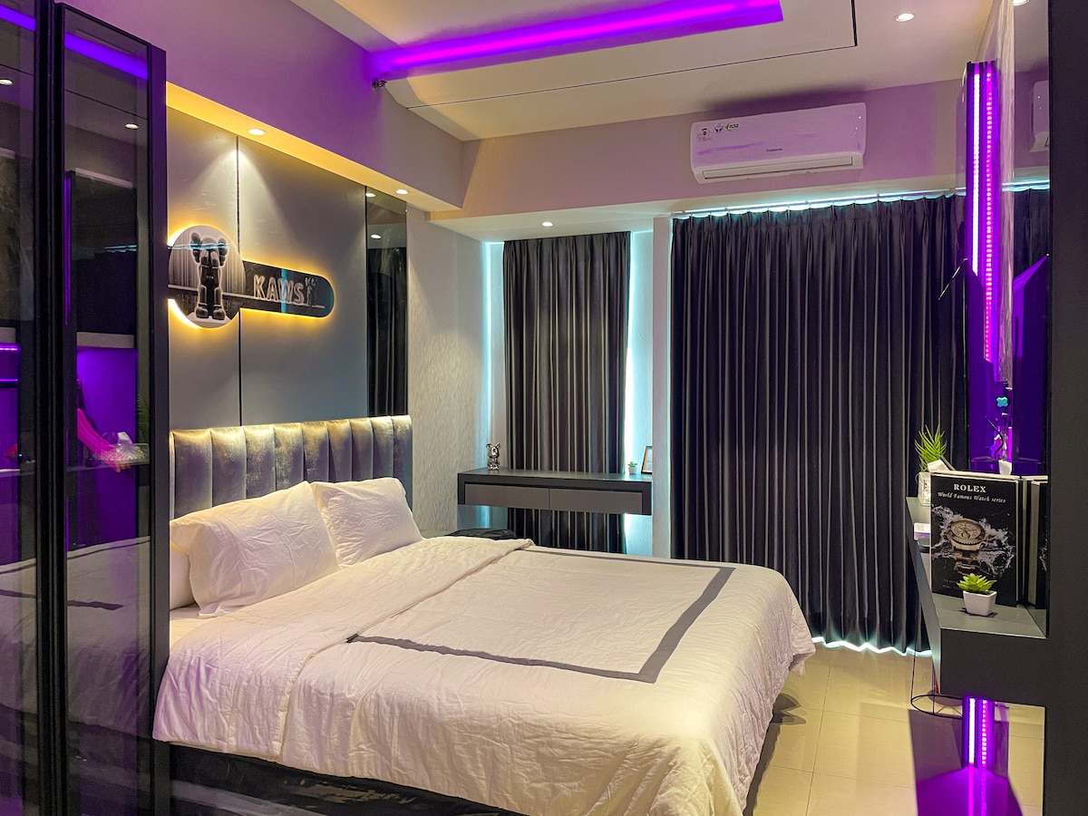 Enjoy a stylish lifestyle in this brand new 2023 apartment, with direct access to the biggest mall in Indonesia, Pakuwon Mall. This luxury apartment is located in the LaViz building and has complete amenities such as gym, swimming pools, hot jacuzzi, rooftop garden, and a 24h concierge in the lobby. *Free parking is only available upon request for weekly/monthly stays. To request, please notify & message me at least 5 days in advance. I will need a photo of your STNK. Paid parking is available.