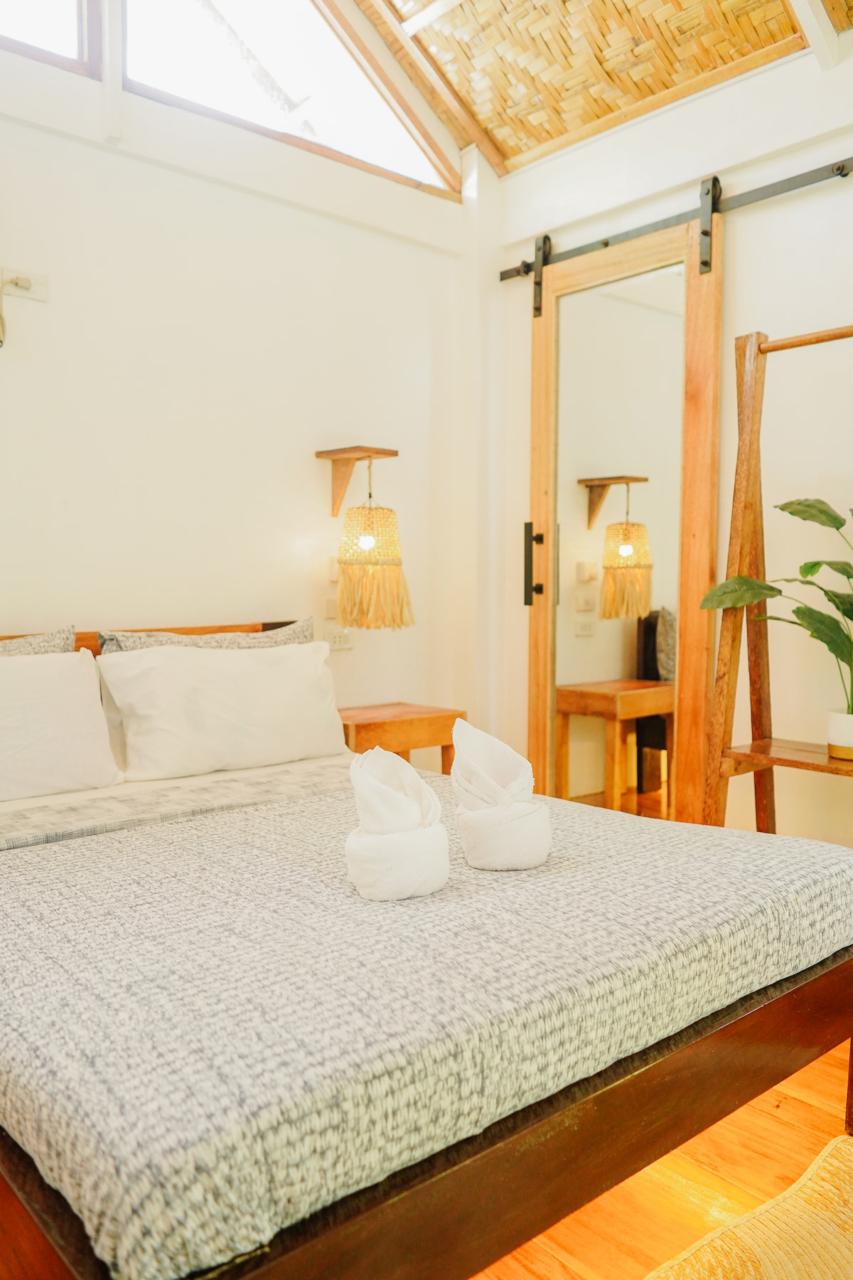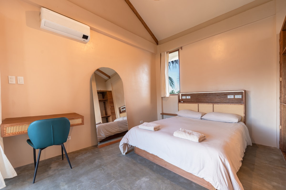 Welcome to Siargao’s premium apartments. Stylish, modern and centrally located in General Luna. Our lofts feature 5 meter high glass doors for ample natural light, automatic curtains for shade and memory foam pillows and an orthopedic mattress in Egyptian cotton! We also run on solar most of the time with back up batteries and generator for power outages, AVRs to protect all your gadgets from power fluctuations, Starlink. Cloud 9 is a 12 minute walk while the bridge is 5 minutes.