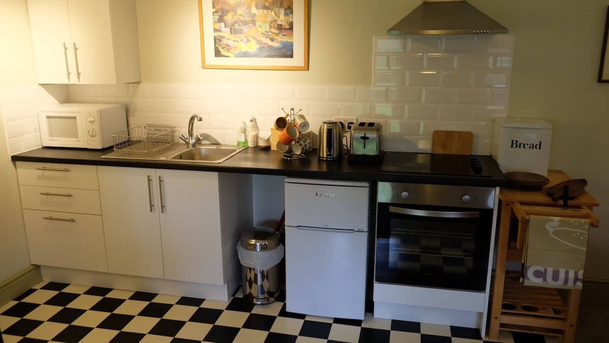 Independent Annex accessed from courtyard with parking 3 rooms comprise of double bedroom, fitted kitchen/dining area (cooker, fridge, microwave) shower room Heating WIFI, small TV, patio area, garden views For singles a couple and infant under 2 The kitchen includes a cafeteria, coffee, breakfast starters - bread, butter, tea, milk, fruit juice, marmalade and cereal. Let us know in advance if you have a problem with these relating to allergies The Annex is not accessible for wheelchairs