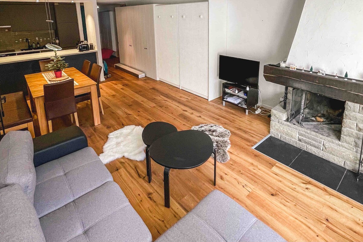 Entspanne dich in diesem einmaligen Rifugio. Im Jahre 2020 total sanierte 2 1/2- Zimmerwohnung, deren Interior Design komplett neu gestaltet wurde. Als Loft mit edelsten Materialien (Valser Granit, Schlossparkett, viel Altholz, freistehende Wanne, Eisenkamin auf zwei Seiten geöffnet, Designarmaturen) ausgebaut. Mit geschütztem Gartensitzplatz und Garten. Sonnige, ruhige Lage. Eigener Hauseingang, Sauna im Nebengebäude. Ski in, ski out oder Skibus in drei Minuten erreichbar.