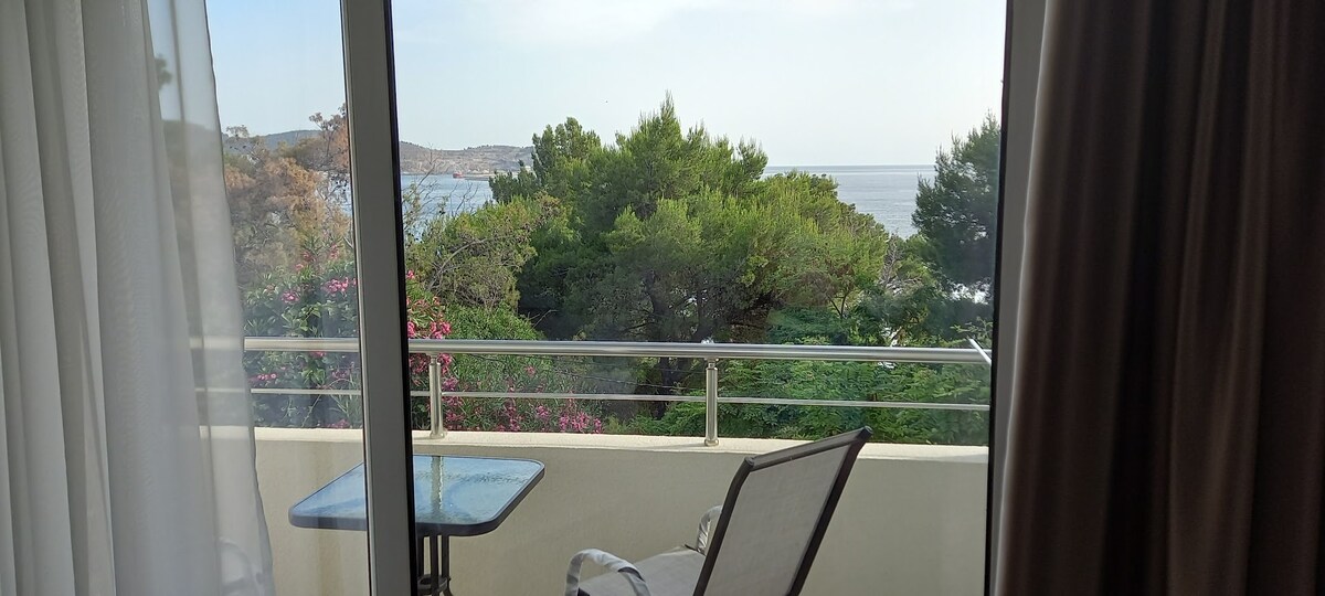 Spacious apartment with a terrace and sea view, located in a quiet green neighborhood on a hill. Easy to reach by car, with free parking available. Inside: two bedrooms, kitchen, shower, washing machine, air conditioning, and Wi-Fi. The beach is 5–7 minutes away by car, walking is also possible. Perfect for a family or friends who value peace and a beautiful view.