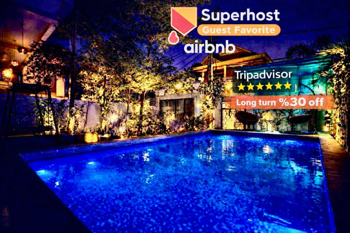 Stay in an authentic 1960s-style villa just 500m from Pub Street, Night Market & Siem Reap center. Each Luxury Double features a king bed (1.8m), balcony, bathtub & seating area. Enjoy free breakfast (6–10AM), outdoor pool (9AM–10PM), plus bar & restaurant. Surrounded by a tropical garden, our villa is a quiet retreat with easy access to Angkor Wat (7km) and the city’s vibrant attractions.