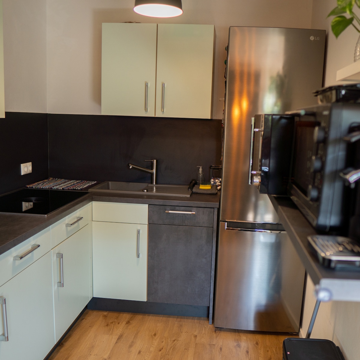 Welcome to MOREHOME Apartments The 3-room ground floor apartment in a quiet area in the heart of Mindelheim can accommodate up to 5 people ->large south-facing terrace with cozy garden lounge ->2 bedrooms with box-spring beds (180×200 & 160×200) –>86 inch smart TV, TeufelCinebar Netflix WLAN –>fully equipped kitchen with fridge/freezer, BORA hob, oven&dishwasher ->comfortable 5m couch, sleeps 5th person ->Switch 2 with Mario Kart & additional games🎮 Sufficient free parking spaces on site