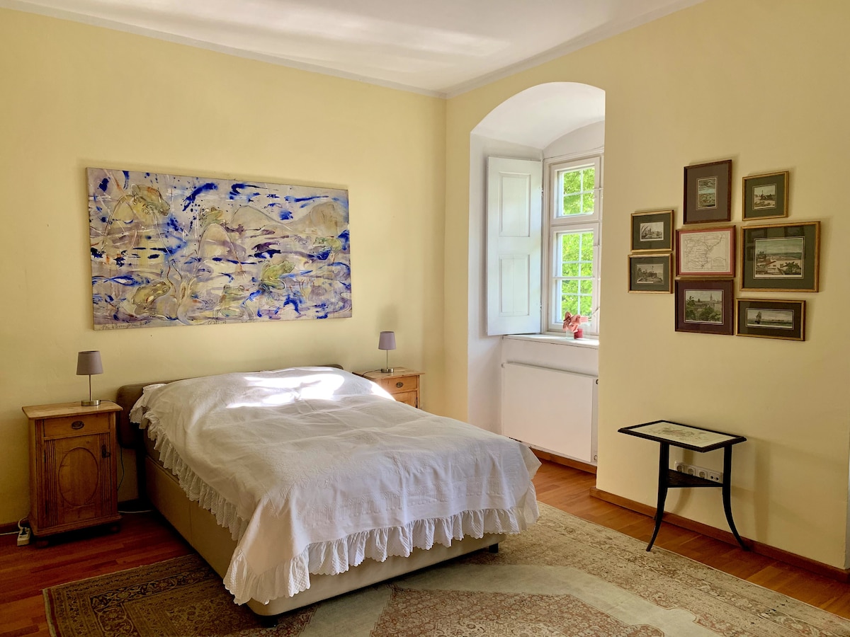 The apartment is quiet and with mountain views. Was renovated in 2018. The apartment is on the 2nd floor (the house has 3 apartments). It has 1 x bathroom, 1 x bedroom, 1 x living room (bedroom) and a nice storage room (height 190 cm) with 2 cots. There are two parking spaces to the apartment. It is located 200 meters from Kurpark Schwangau. In the village there are food markets and restaurants. The Royal Therme is about 600 meters away. The Forggensee is not 2 km away.