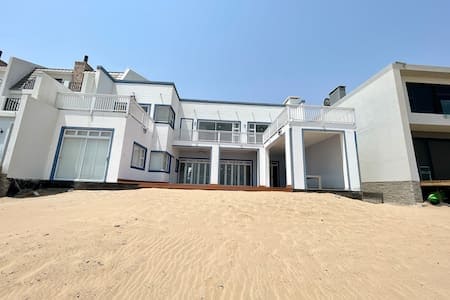 Beautiful, artistically decorated and very well equipped 3 bedroom, 3 bathroom house, ideal for families. 2 Bedrooms are in the main part, and the 3rd is directly adjacent, with its own bathroom and kitchen. This house is uniquely designed and built around a lovely courtyard with barbeque and firepit facilities to ensure protection from the coastal elements. Conveniently located 300m from the Ocean View shopping complex, 1.4km from Platz am Meer Mall and 6km from central Swakopmund.