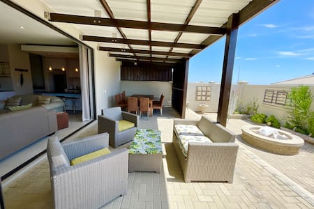 Discover modern haven by the sea, boasting 3 bedrooms and ocean views. This self-catering beach house welcomes you with sleek design and coastal charm. Lounge in the airy living space, cook meals in the fully equipped kitchen, or dine overlooking the waves. Take a refreshing dip in the swimming pool, while making an outside BBQ. Stroll to the beach steps away. With contemporary comforts & stunning views, it's the ultimate retreat for beachside relaxation. Extra bed can be arranged for 2 children