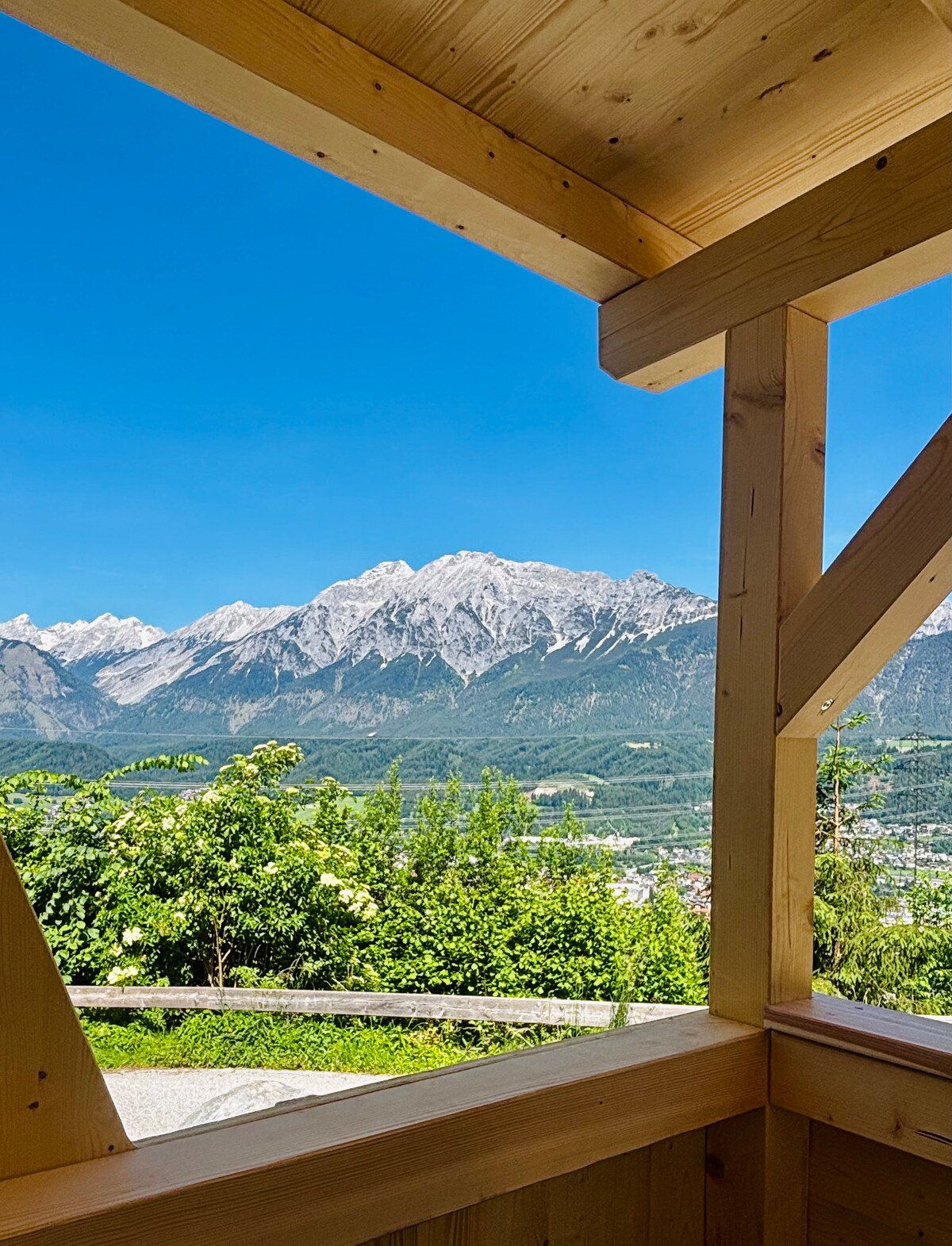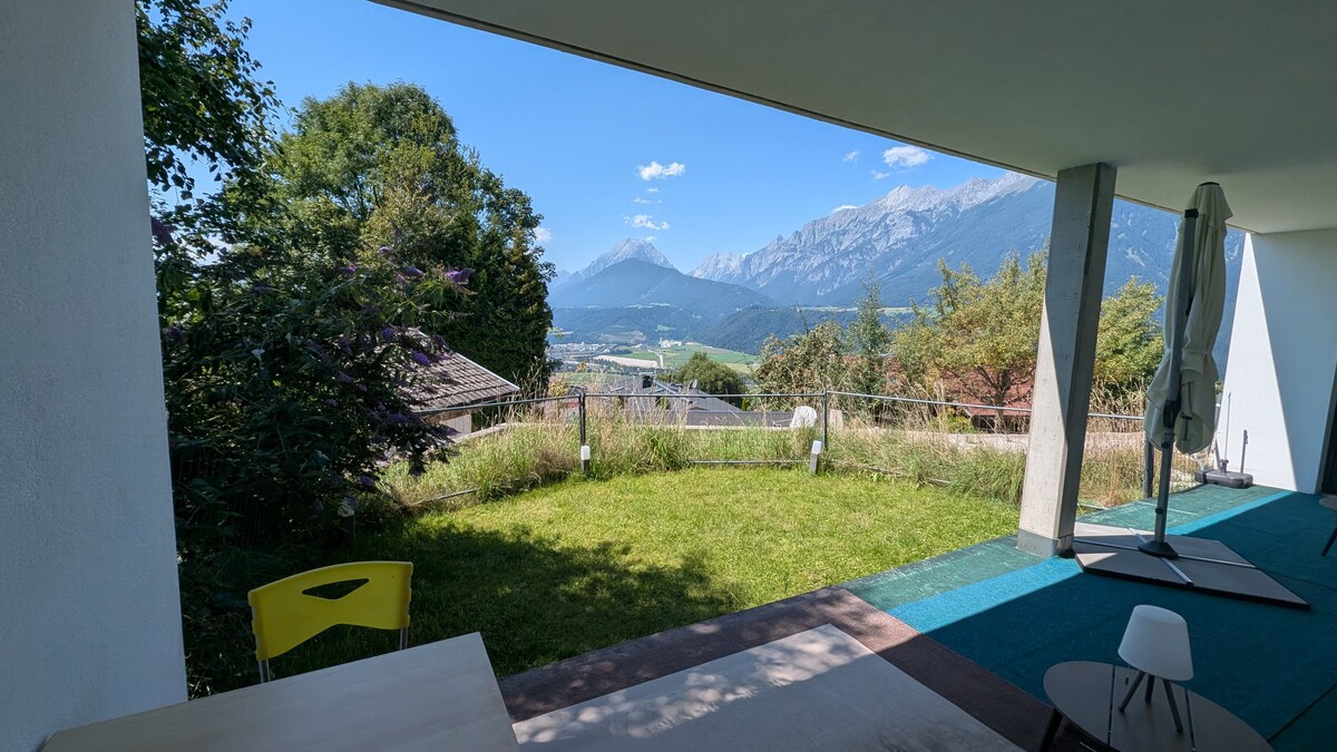 Coziness, the airy lightness of the atmosphere, a quiet, relaxing setting amidst a striking garden, the stunning panoramic views, as well as creativity and originality characterize this accommodation. The 45m² mansard, part of a duplex apartment, is the perfect retreat after an eventful day in the mountains, on the ski slopes or after a stay in the inviting pubs and cultural venues of the Alpine town of Innsbruck.