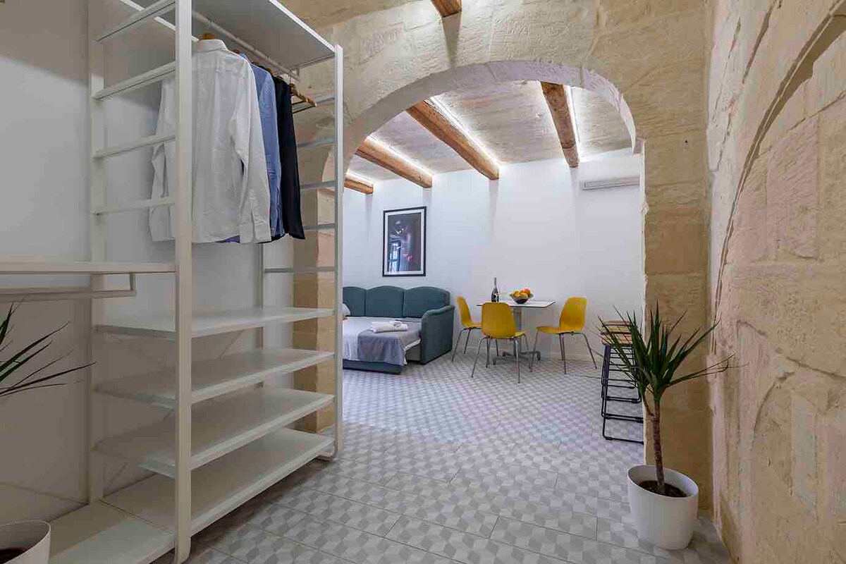 The fully furnished suites are located in the historic capital city of Malta, Valletta. The combination of the traditional style of the 300 year old townhouse, with the modern interiors of the space creates an atmosphere like no other. They are on a corner close to Castille Palace and therefore enjoy plenty of light since they overlook two charming Valletta street. Access to views of the Grand Harbour from terrace on the 4th floor.