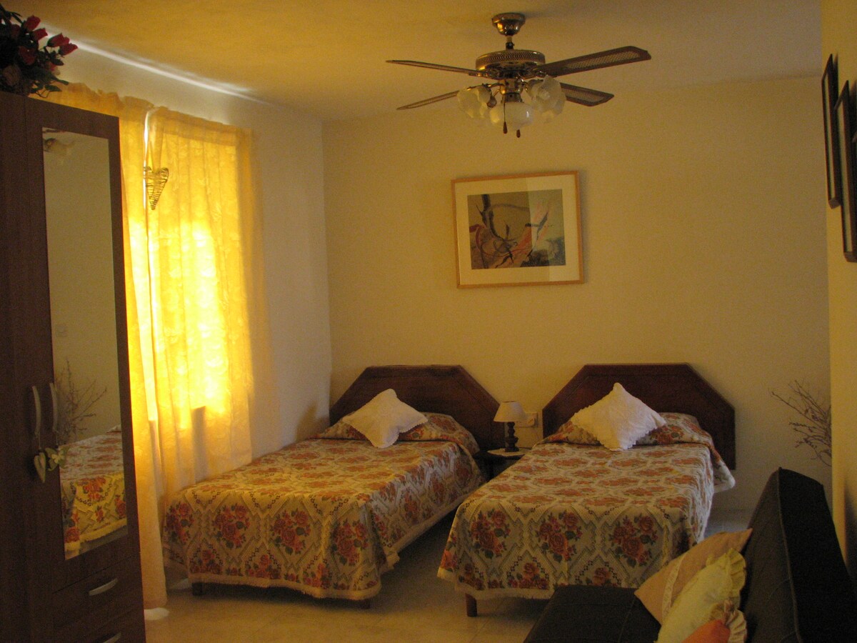 A one level house situated in San Gwann - a residential suburb with a commercial centre in the East of Malta. One can easily travel to popular chapels across town by foot and to the nearest beaches, shopping malls and tourist attractions found in St. Julianās, Sliema and Birkikara. The entire place can host 4 persons in all and consists of 2 bedrooms (both bedrooms with a double bed).