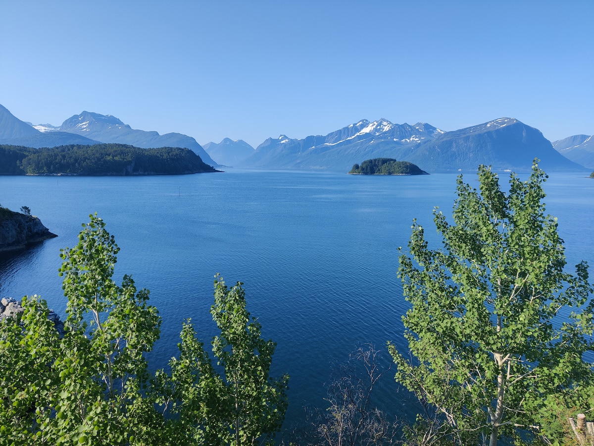 In this spacious and unique place, the whole group will be comfortable. Access to large, sunny outdoor area, short distance to the beach and the mountains. 10 minutes to the bus stop. Bus to Ålesund city center approx. 30 minutes. Good fishing opportunities in the sea and in mountain lakes. An excellent starting point for many tourist attractions such as Sunnmørsalpene, Geiranger, Trollstigen, Nordangsdalen, Alnes Fyr, Giske. A spectacular and accessible area for mountain hiking, mountain tours and recreational stays in beautiful nature.