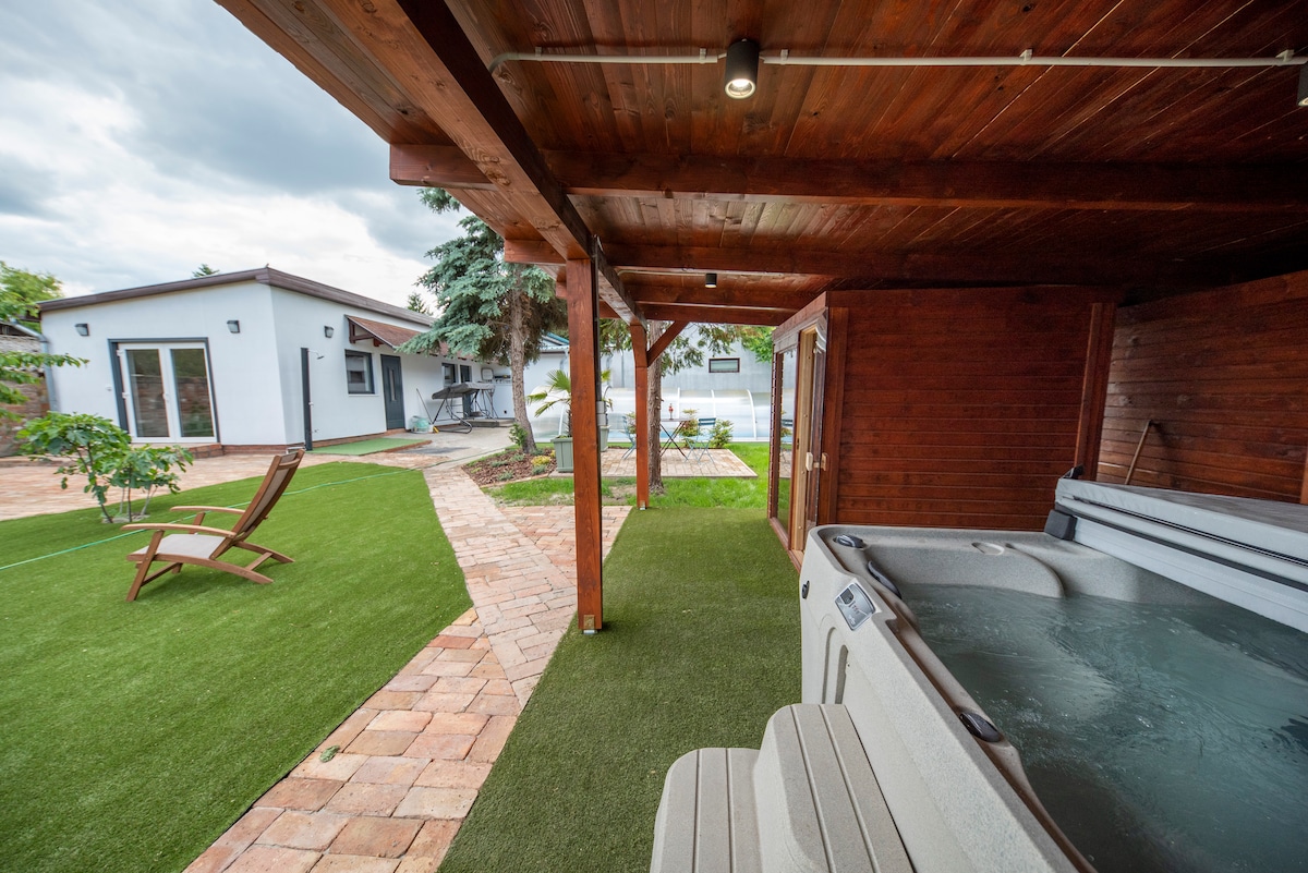 Our family, cozy, air-conditioned, fully equipped cottage operates as part of our family home. Breakfast can be arranged from a local grocery store (150m) or in our family restaurant (100m) where we provide a 15% discount on their consumption. We treat our guests with a Nespresso coffee machine and capsules. It is possible to rent a bicycle in the bicycle rental on the street. The courtyard is a common area if the other apartment is also rented. Superhost status. We look forward to your visit, Zoltán and family