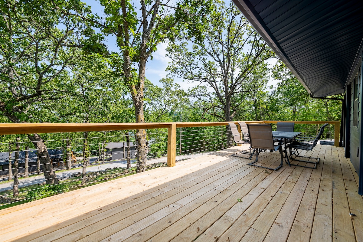 Sunset cottage is lakefront and lake view. Enjoy the water just a few steps away, or while sitting on your own personal deck. Hot tub with lake view on your deck. This is one of our two our modern-rustic, guest cottages, next to our home. If you need two cottages, check out water’s edge cottage. Cottage is one minute to Cricket Creek marina/State park, 10 minutes to Big Cedar Lodge/Top of the Rock, and 20 minutes to Branson amenities. 15 miles to world class golfing. Some venues seasonal.