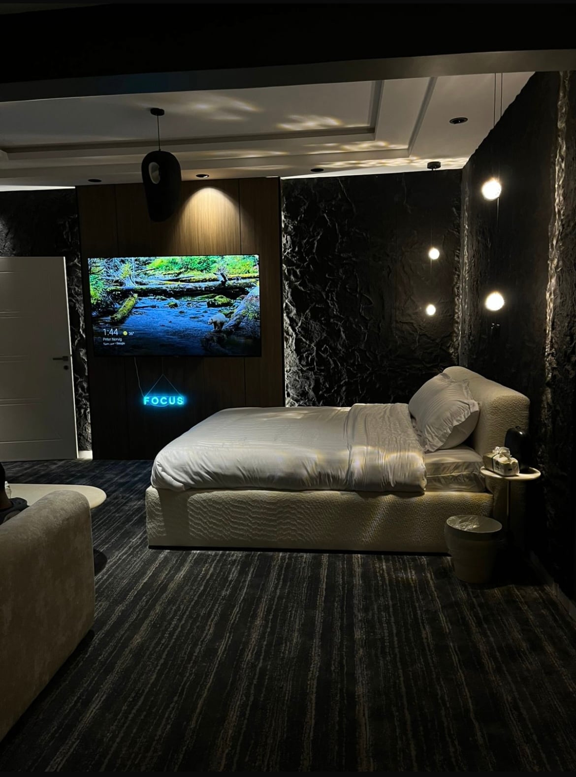 Family apartment with modern décor perfect for a comfortable and quiet stay • Spacious and comfortable king size bed. • Elegant lounge with practical seating. • Modern bathroom with luxurious finishes. • Distinctive air conditioning and lighting for greater comfort. 🌟 Perfect choice for visitors looking for comfort whether for business or leisure