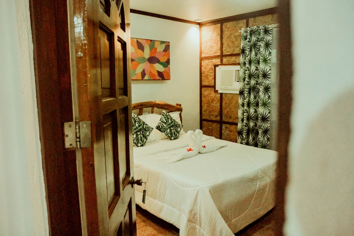 Private room in a traditional Filipino house within the quaint fishing community of San Pedro Beach. It's a 2-min walk to the wild beach next to the luxurious Mithi Resort and 15-min walk to the cave. The room is equipped w/ aircon, queen bed, cabinet, and a shared bathroom w/ hot shower & toiletries. There is also a veranda w/ hammocks, daily housekeeping, 200 Mbps WiFi, restaurant, tour assistance, massages, scooter rental & other services. Please note: this is NOT A LUXURY ACCOMMODATION.