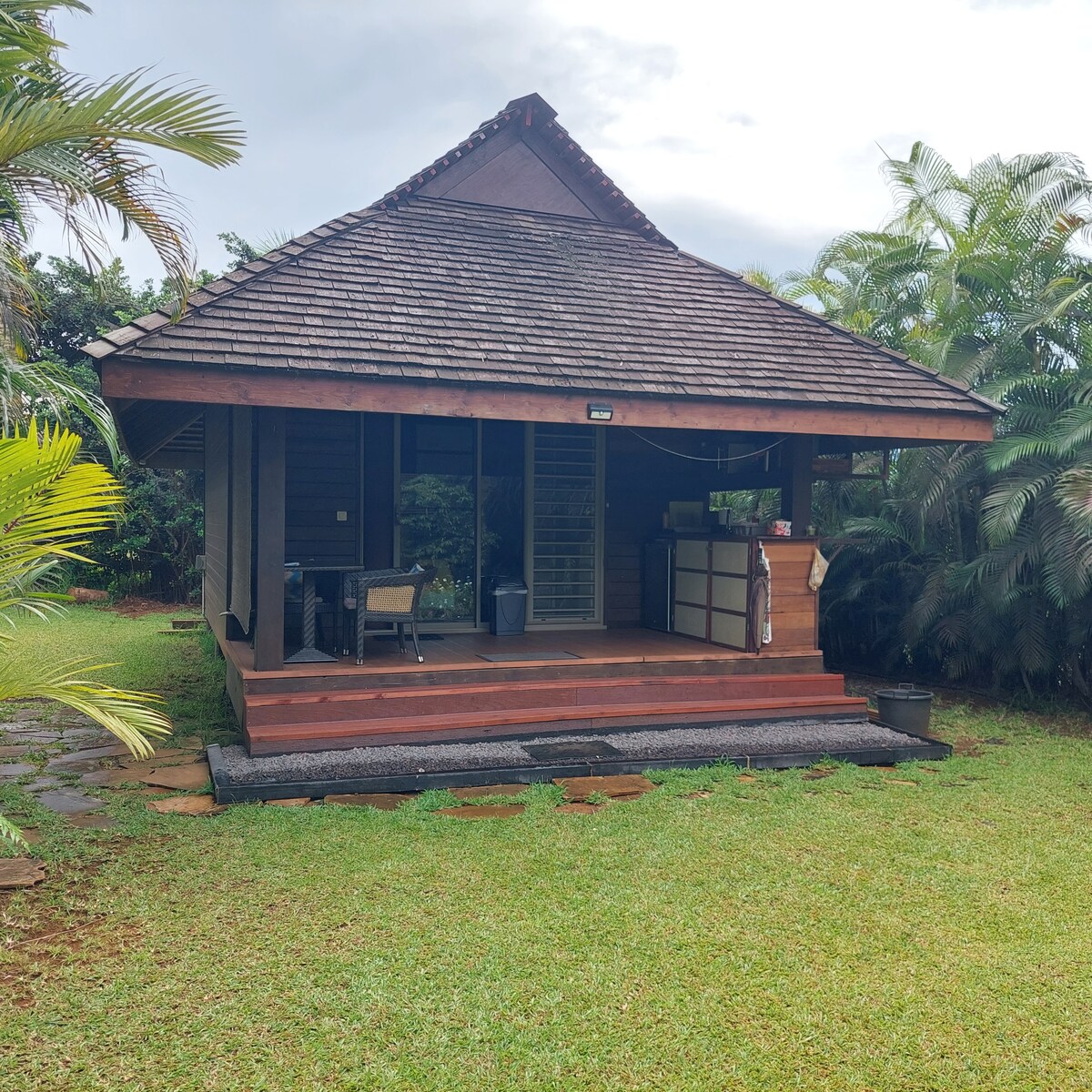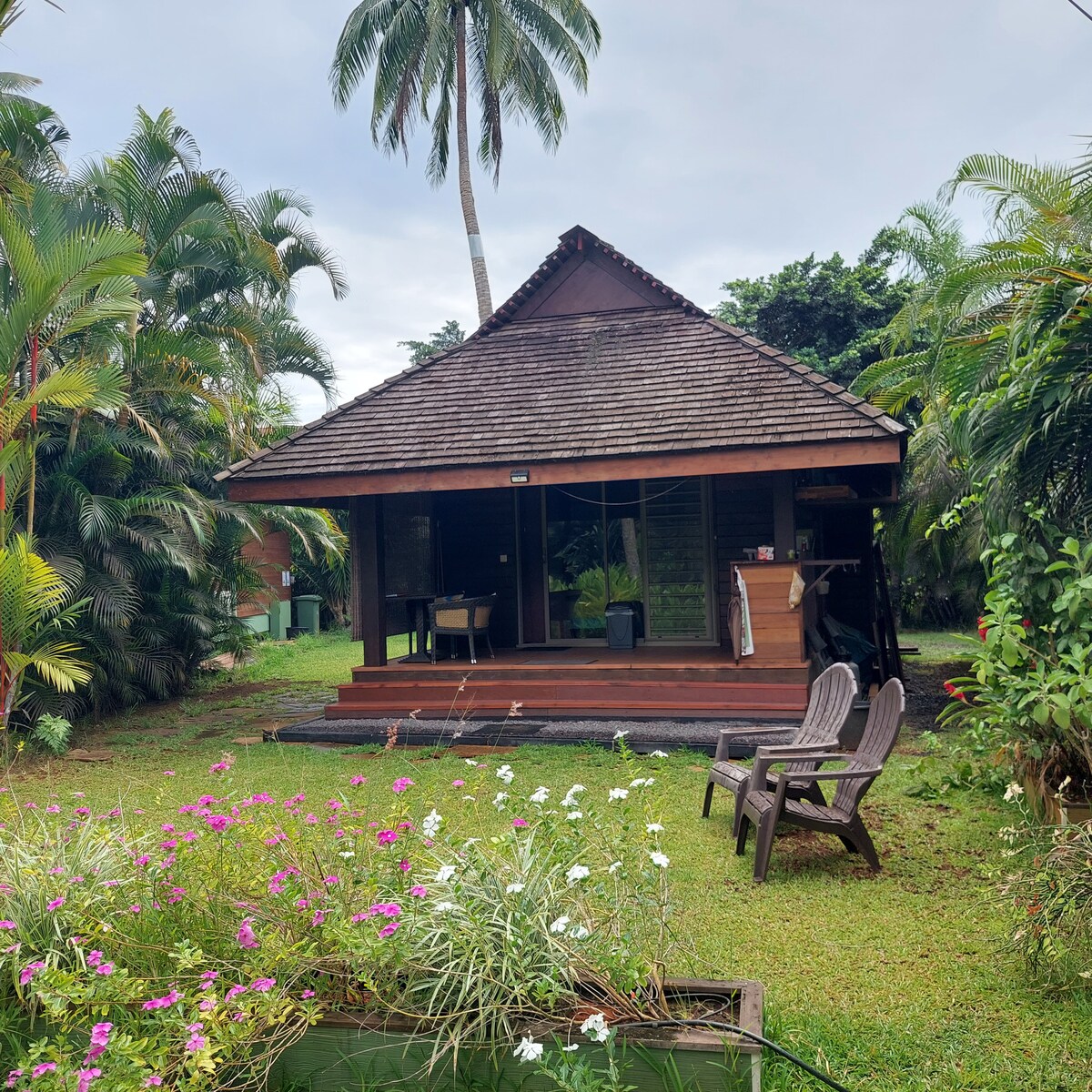 My place is 2 kilometers from snacks, restaurants, hypermarkets, pharmacy, banks. Diving, hiking, swimming are 5 minutes drive and Teahupoo's wave is 15 minutes. You'll love the place for its lush vegetation, mountain views, and typical local bungalows. You'll love the sound of the wind in the coconut trees as well as the pool... unforgettable. Equipped with a kitchenette, the bungalow is perfect for couples, solo and business travelers.