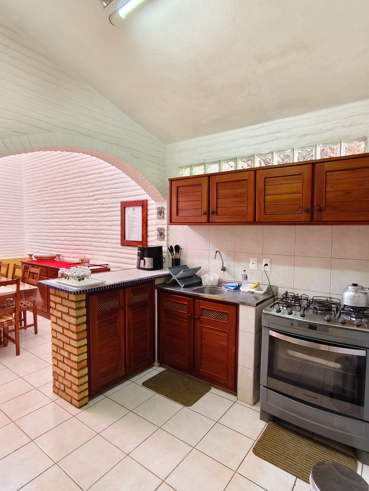 The little house in the village is located in the Vila do Chapéu condominium, with all the security and convenience of a concierge and common area with a beach tennis court, skate park, playground and gym. The little house has a complete and private leisure area, with a swimming pool and an integrated gourmet area with a fully equipped kitchen for those who like to cook. The suites are super comfortable, with premium mattresses and bedding to provide the comfort of a nice home.