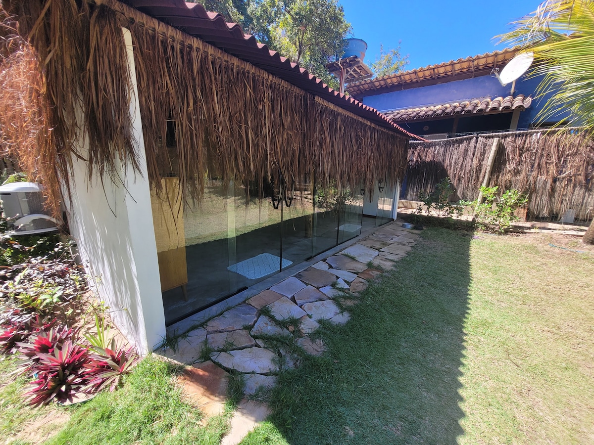 A little house built and decorated with great affection. Charming, comfortable, cozy, close to the beautiful Bombaça beach. It has a well-equipped kitchen, hammocks, air-conditioning, a ceiling fan, and a service area with a washing machine. Located in a gated community, with lakes and lots of greenery, it is a place of exuberant nature, silence and privacy. Here you wake up to birds singing, and hear the sound of the sea at any time. Perfect for those who want to relax and be enchanted.